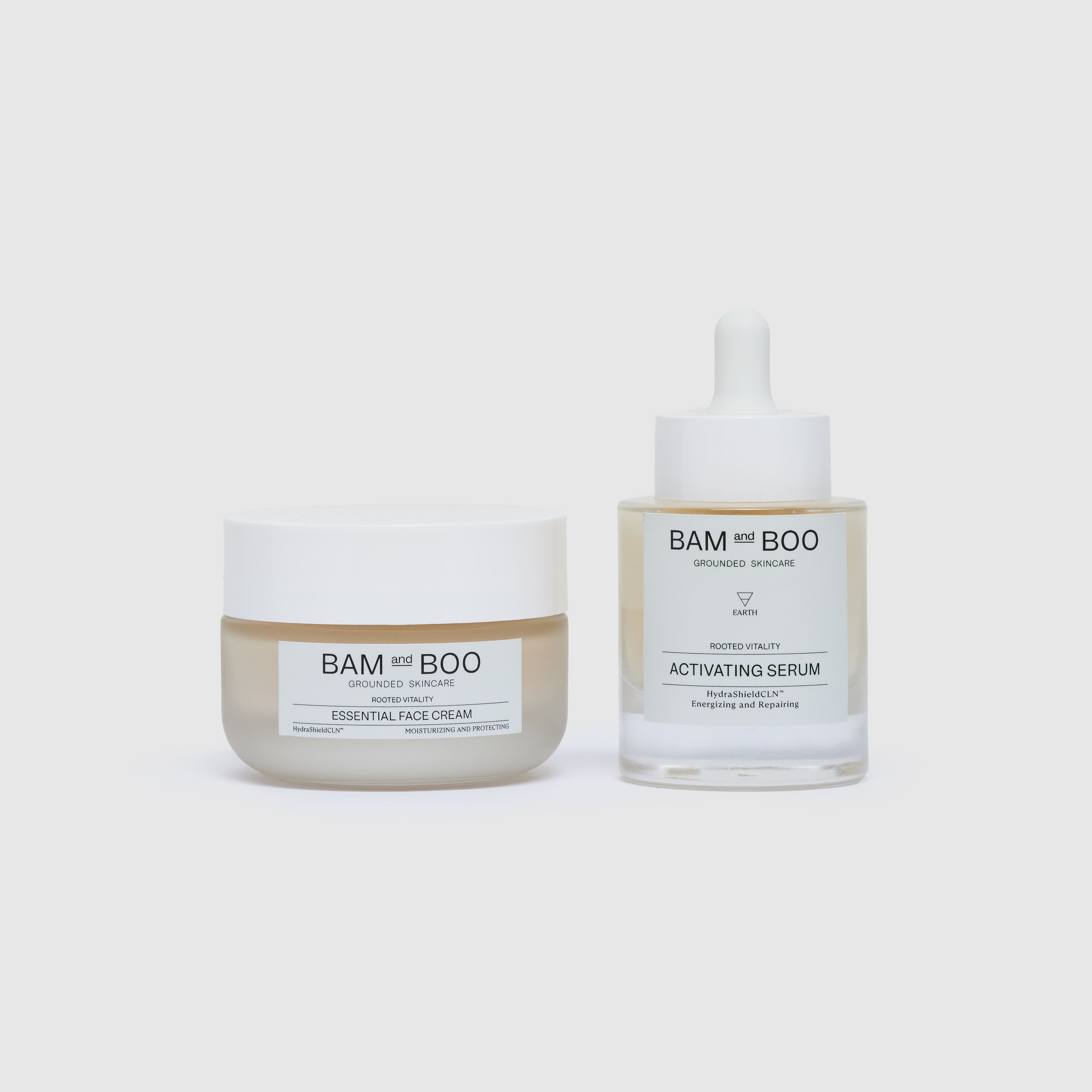 Discover the ultimate skincare set and defence against sun damage and premature aging. Hydrating cream and cleanser.